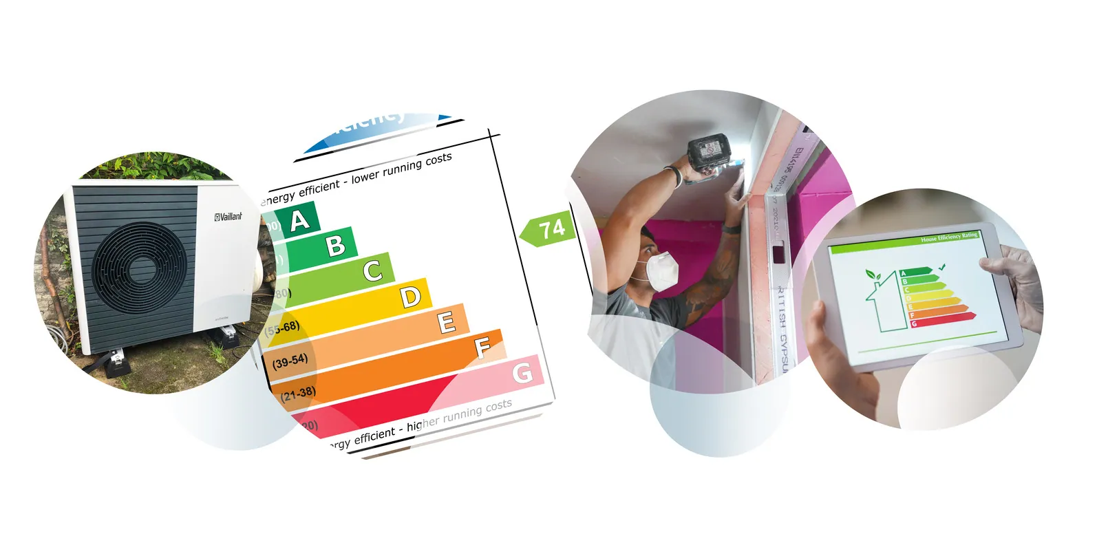 from A (most efficient) to G (least efficient). It recommends improvements that could upgrade this rating, such as